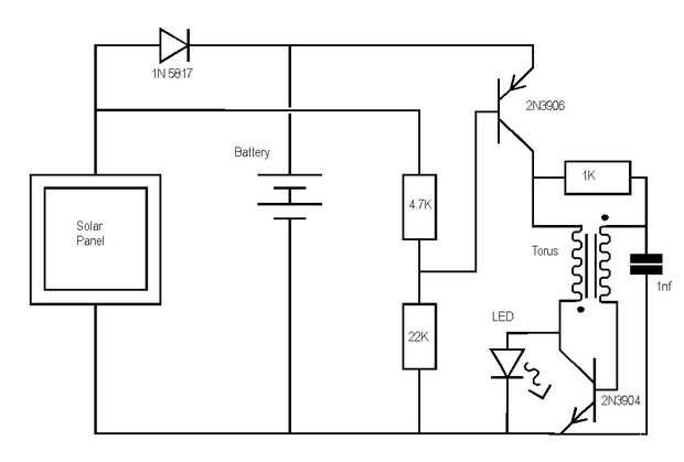 Por último, el interruptor aísla la parte de joule-thief para que podemos seguir cargar la batería, pero tienen la lámpara apagada. Si desactivas esto entonces el 5-10 mA que se generan en la sombra podrían sólo podrá cargar la batería en el invierno para darle luz a una noche a la semana!