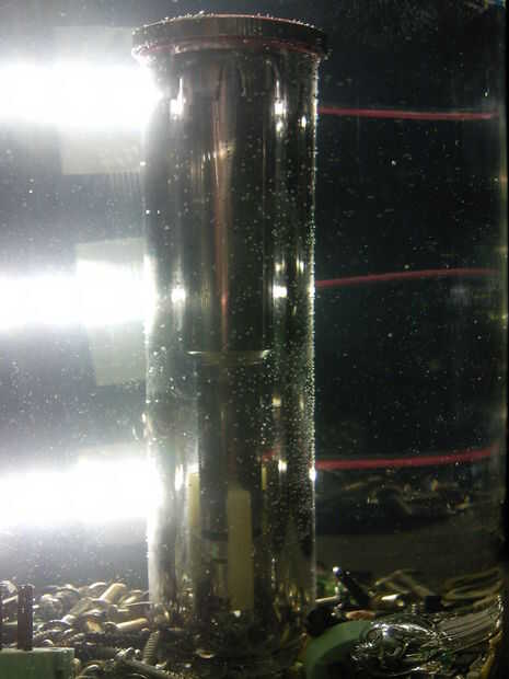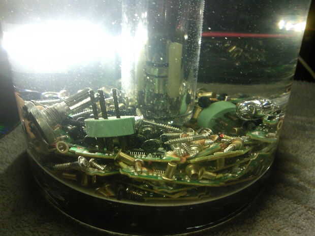 entonces llené el vaso con agua. luego había espolvoreado los tornillos pequeños y varias partes.