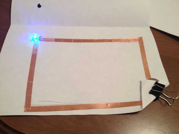 Este es el circuito de papel que he creado en clase el miércoles. Nunca he hecho algo así antes, así que decidí mantener las cosas bastante simples. He seguido un ejemplo que estaba en nuestra mesa y creado mi propio. Cuando primero traté de conectar el circuito el LED no enciende. Noté que mi cinta de cobre no era tan suave como podría haber sido así alisaron y trató de conectar el circuito una vez más, esta vez funcionó! Creado mi circuito primero y luego procedió a dibujar un cuadro en la parte delantera. Elegí hacer espacio ya que es lo que parpadea las luces me recuerdan de. Me ha gustado hacer este proyecto y tenía mucha diversión haciendo!