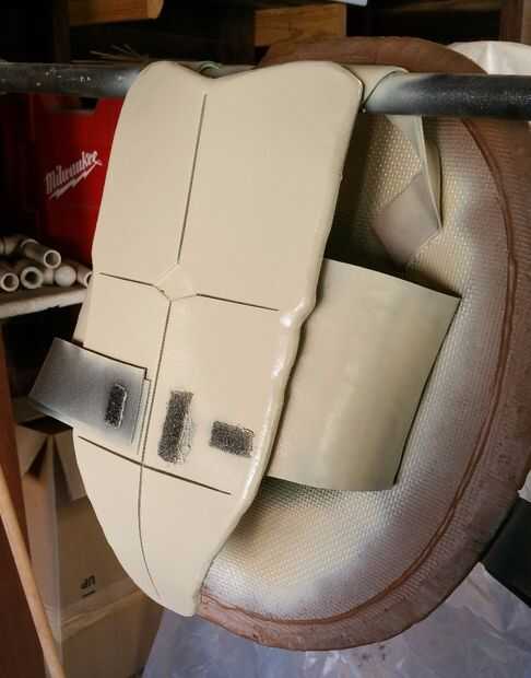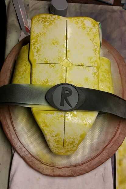 Para transformar la apariencia de la pieza del pecho, primero aerosol pintado, junto con el resto del traje, con negro, Plasti Dip. Esto es para sellar la espuma para que la pintura no se absorberá en la espuma. Dejé esta serie durante varios días y entonces comencé la pintura detalle.