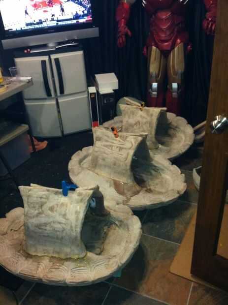 2) de la mezcla y Vierta lentamente el material de piel de dragón en los moldes. (Ayuda a eliminar en aire intraptment)