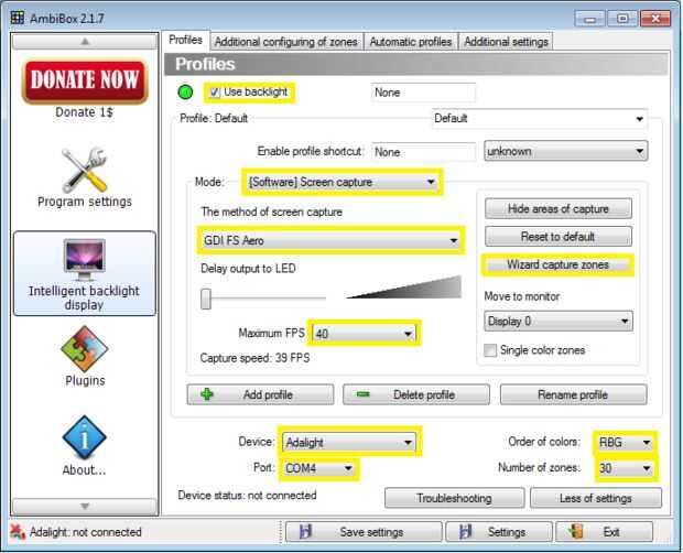 Tienes que ejecutar el "Asistente para captura de las zonas" después de seleccionar el número de zonas (LED). Esto organizará automáticamente las cajas captura alrededor de la pantalla para usted.
