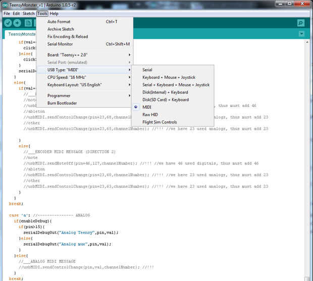 PASO 4 __ SUBIRAhora subir el código al monstruo Teensy. Abrir el software. Debería ver 'Teensy' aparece como un controlador MIDI. Comenzar su asignación.