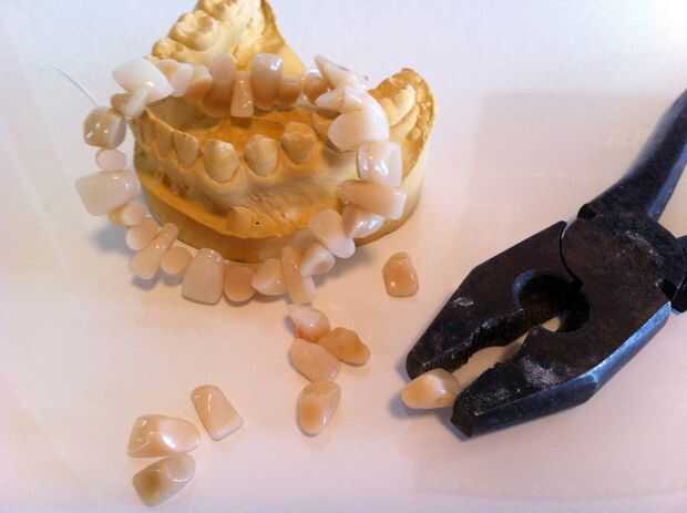 Se trata de dientes de plástico utilizados en los laboratorios dentales.