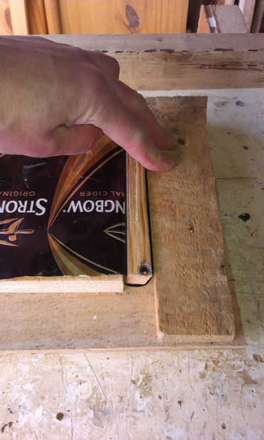 Estas piezas estrechas deben atornillarse en el borde de la madera que se muestra, asegurándose de que la madera de la última etapa se ajuste apretado entre ellos. Aprendí por ensayo que usted realmente necesita para mantener las partes superior e inferior lo mas ajustado posible para que el aluminio sólo caben entre ellos. De lo contrario, no dobla muy bien cuando presionan y se a ser redondeado en lugar de definido.