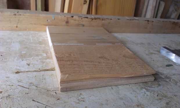 Para la parte superior, consigue un trozo de madera que es el mismo ancho que la pieza moldeada. Esto es importante para que las dos piezas se acoplarán entre sí. Para obtener algunas piezas delgadas que caben en la parte de surco de la baldosa, uno para cada lado. Como son estrechas, es mejor estas enroscar como clavos probablemente dividiría la madera.