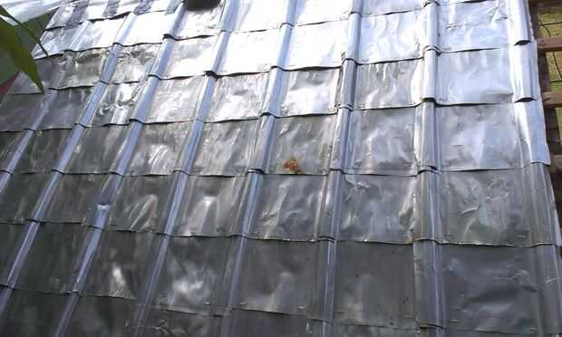 Como las baldosas están hechas de metal muy fino, es fácil graparlos en con una pistola de grapas. Usted debe primero de todos desde la fila inferior en la esquina exterior y grapa la primera en la laminita inferior. Me pusieron grapas en la parte superior de la parte plana, una a cada lado, superpuestos uno al lado y hacían iguales hasta que la primera capa de fondo se llenó.