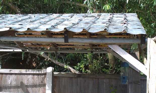 Entonces mover a la siguiente fila para arriba pero esta vez, grapa en la parte inferior de la baldosa. Esto es para que no levante el viento y dejan pasar la lluvia. Si los azulejos no se sientan demasiado cómodamente sobre las juntas, coloque algunas grapas más. En los extremos del techo, en las vigas exteriores, puede doblar el azulejo encima del borde y engrape a lado para evitar las fugas.