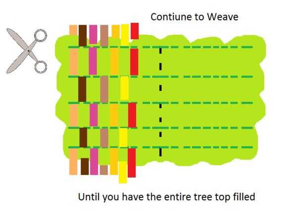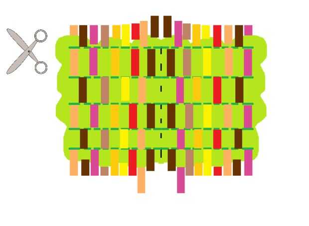 Les siguen tejer, cuando llegan a la marca de la mitad tienen les Compruebe para ver si están en la pista. Les digo cualquier otro color debe ser verde, si tienen una tira larga de color verde que no un tejido. Es muy fácil de solucionar con el papel, puede simplemente tire la tira y empezar de nuevo si es necesario.
