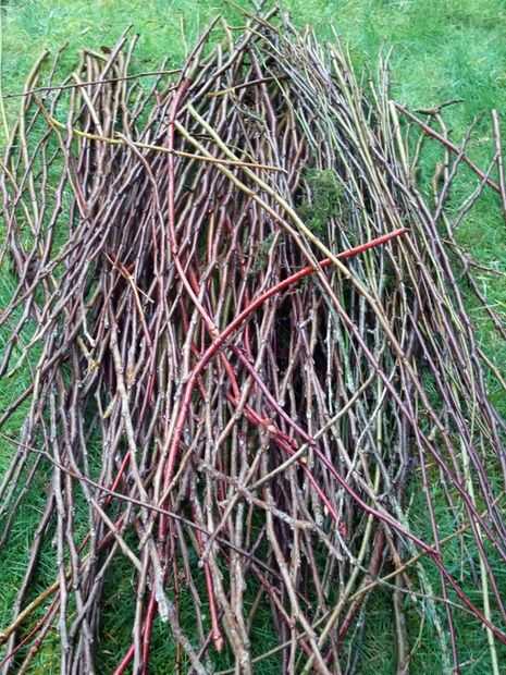 En primer lugar usted tiene que recoger las varillas. Puede usar sauce por supuesto. Pero cornos se ve muy bien también (eso espero, esta es la palabra correcta - también se encuentra el "cornel de expresiones" y "cornus"). Tenga en cuenta que las barras deben ser flexible y lo suficientemente largo. Y que tienen un diámetro de aprox. 1 a 2 centímetros (pulgada de 0,4 a 06). Se ve muy bonita, si recoges las barras de distintos colores.