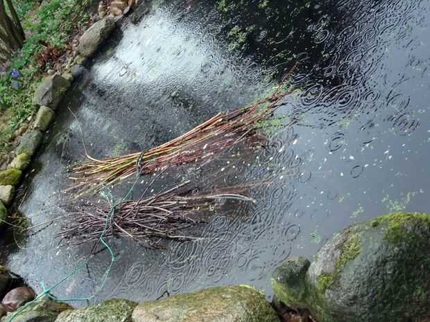 Para hacer las barras de suave y flexible, se debe remojar al menos una noche. Como se puede ver, simplemente usé nuestro estanque de jardín para hacerlo. Si usted tiene ninguno, también puede utilizar un barril de lluvia - o baño tina.