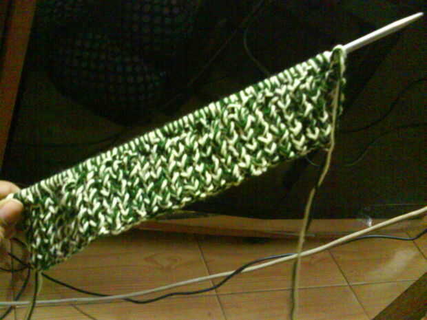 Fundición en 74 puntos en las agujas de tamaño 7 y hacer la puntada de costilla para cerca de 6 a 8 filas (1 pulgada).