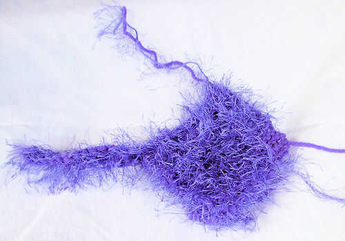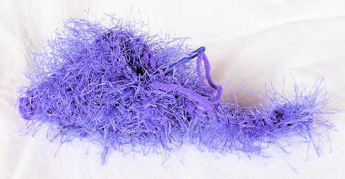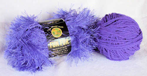 -> Chatarra marca del León [http://cache.lionbrand.com//yarns/funFur.htm diversión hilo de piel] en color complementario, cerca de 2 yardas. En mi proyecto, utilicé violeta (Color #191).