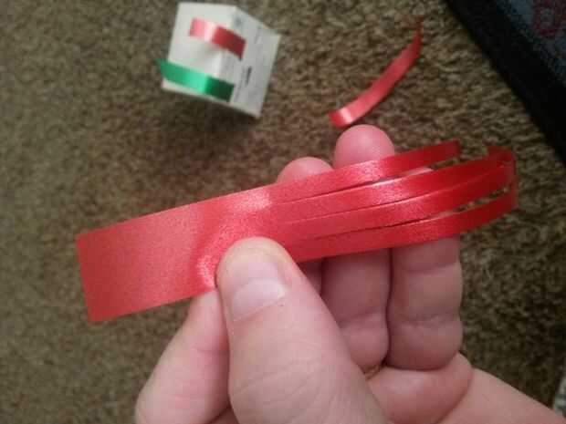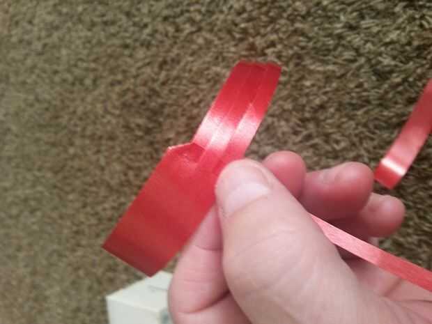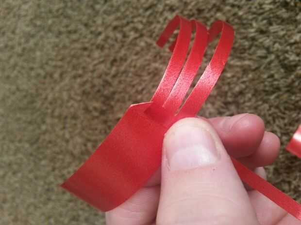 Una vez que ha practicado usted puede conseguir las cintas sin cortes en la misma dirección también la curva. La curva será de ser envuelta en el carrete. Puede utilizar la curva como parte de su diseño de pájaro.