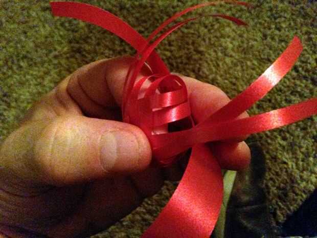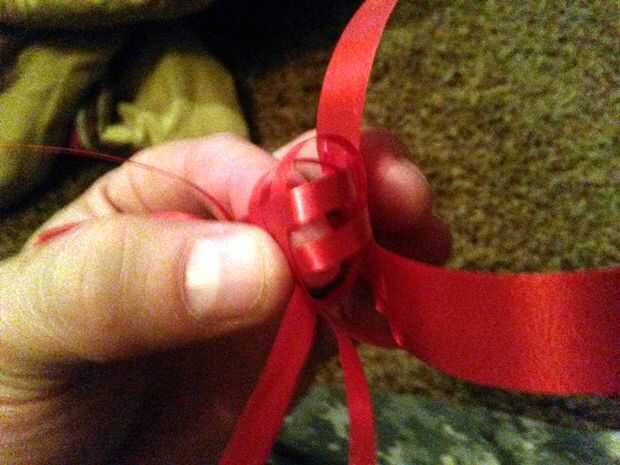 Aquí fueron pueden apretar el cuerpo hacia arriba tirando suavemente cada tira un poco a la vez para cerrar los vacíos en el patrón de la armadura. Cuando termines todas las tiras deben ser la misma longitud si su final cut era cerca de recto o cuadrado.
