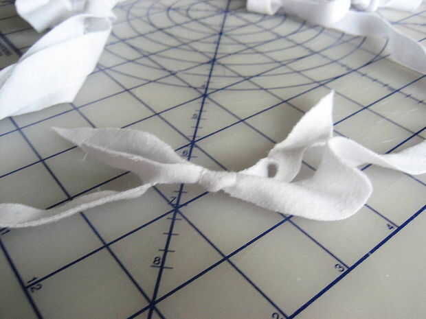 Ahora debe tener dos tiras largas y delgadas de tela. Atarlos juntos.