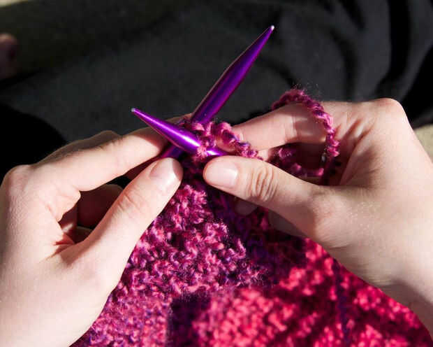Utilizar el basic punto puntada a las filas de su bufanda de punto. Para hacer esto, sostenga la aguja con su fila en la mano izquierda. Enrolla el hilo de la madeja alrededor del dedo índice derecho, como hace el hilado más fácil de manejar. Meter la aguja derecha en el centro del lazo superior, asegurándose de que la aguja derecha va detrás de la izquierda. Esto formará un X. envolver el hilo alrededor de la aguja posterior, de hacia adelante hacia atrás. Aferrarse a la aguja superior con su mano izquierda. No se olvide de colgar también en el el hilo con el dedo índice derecho. Luego, tome la punta de la aguja de atrás hacia abajo y en medio de la puntada en su mano izquierda, hacia usted. Tire de la aguja de la derecha para que la puntada se desliza de la aguja izquierda a la derecha.