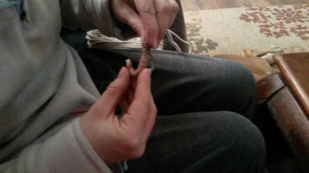 1. en la primera foto estoy alineando de hilo para el cable. I sostener la punta del hilo con mi mano izquierda y enrolle el resto del hilo alrededor de la médula.