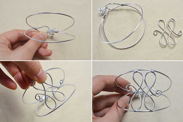 2, uso que algunos plata cobre alambres fijar los 4 extremos en el medio de terminado lazo de aluminio de plata.