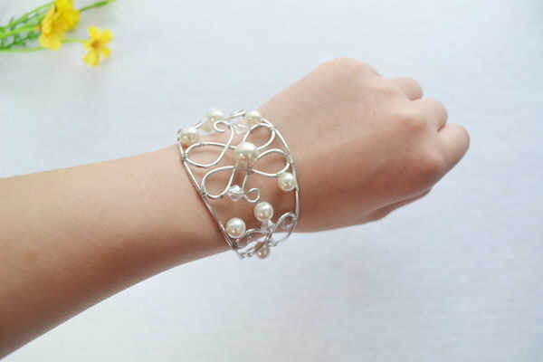 Tejida pulsera con perlas y plata cables - un regalo especial para tu mejor amigo (6 / 6 paso)