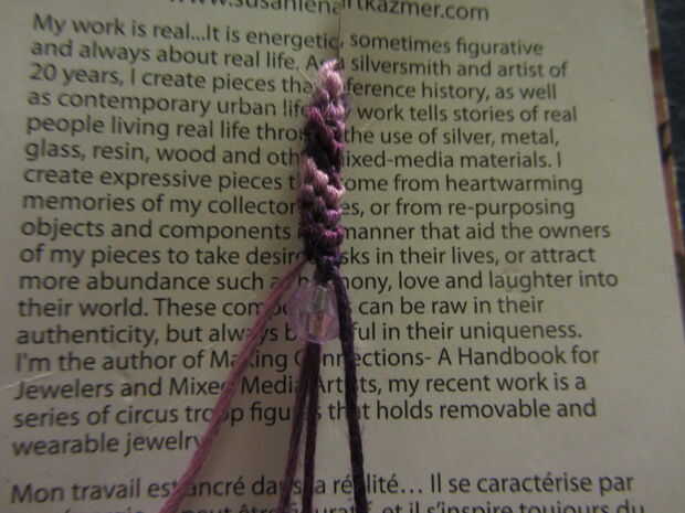 Me ponga vaselina en los extremos del hilo y los torcidos juntos por lo que sería más fácil enlácelos a través del centro o el grano.
