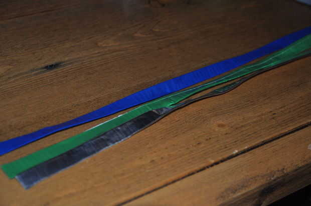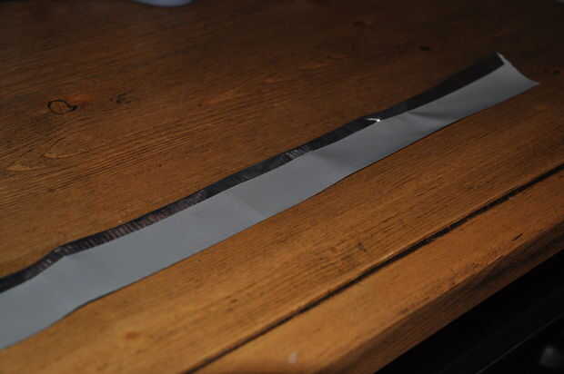 1. doble hacia abajo de una tira de 1 centimer en la parte superior, la subsistencia plegable hacia abajo, hacer esto para todas las 3 tiras. recorte los extremos de estas piezas.