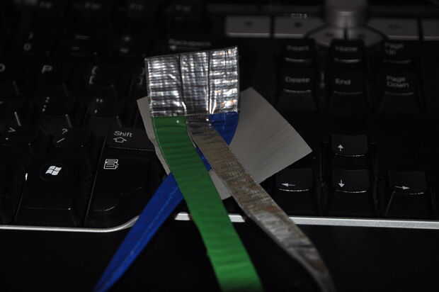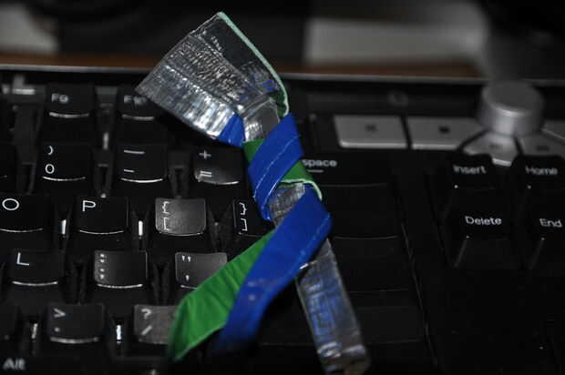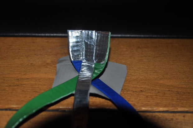 2. Utilice una tira de cinta para unir las tiras en la parte superior.