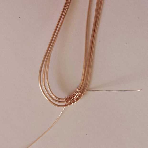 Necesitarás tres pedazos de alambre base (alambre grueso que va envolviendo alrededor) que son 12 pulgadas de largo. Para ser honesto, he utilizado 15 pulgadas que fue exagerada, pero eso es porque alguien sabio una vez me enseñó que es mejor tener una larga duración de exceso corta pedacitos que no se pueden utilizar...
