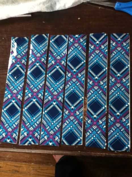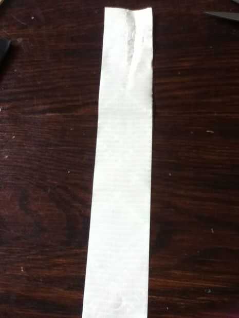 Cortar una pieza si el conducto es de 1' de largo de la cinta y coloque el lado pegajoso hacia arriba. Luego recorta otro pice de cinta que también 1' de largo y coloque el lado pegajoso hacia el lado pegajoso de la otras pice de cinta del conducto. Tienes crea una tira. Continúe esto hasta que tenga seis tiras.