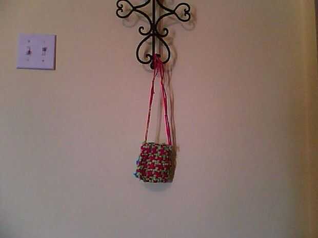 Este verano quería hacerme un monedero. En el transcurso de tres días, pude hacer el conducto de tiras de cinta, tejerlos juntos y construir este monedero. En total, creo que me tomó aproximadamente 6 1/2 horas para hacer. Si usted es un principiante
