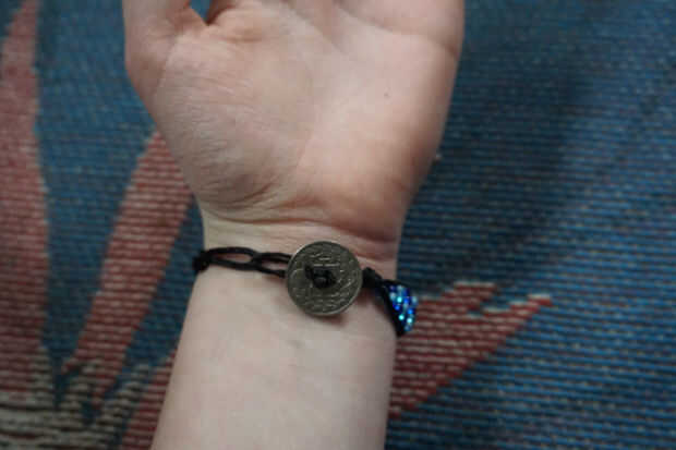 - Un grano de cierre-usé una moneda con un agujero en ella pero botones trabajar demasiado