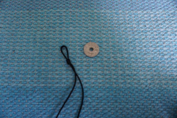 En primer lugar, tomar el cable y doblar por la mitad. Un nudo alrededor de una media pulgada hacia abajo para que la parte superior realiza un bucle. Asegúrese de que su talón de cierre se ajusta sólo a través de este lazo, ya esto va a ser parte de su cierre. A continuación, tomar un trozo de hilo delgado dos veces tan largo como el cable, doblar por la mitad y atar el cordón anudado en la parte superior para que tenga dos piezas colgando de hilos de igual longitud. Enrosque las dos agujas en ambos de estos y reforzar los nudos con el pulimento de clavo claro. Una vez este clip al portapapeles o cinta hacia abajo, usted está listo para comenzar a tejer!