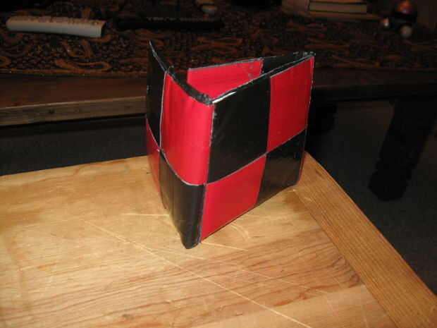 breves instrucciones... esto es sólo hecho de cinta adhesiva, cartón, pegamento caliente y el marcador lo primero que hice fue a sorteo las piezas en una hoja de cartón. luego con un xacto cuchillo que corté las piezas hacia fuera entonces yo calient