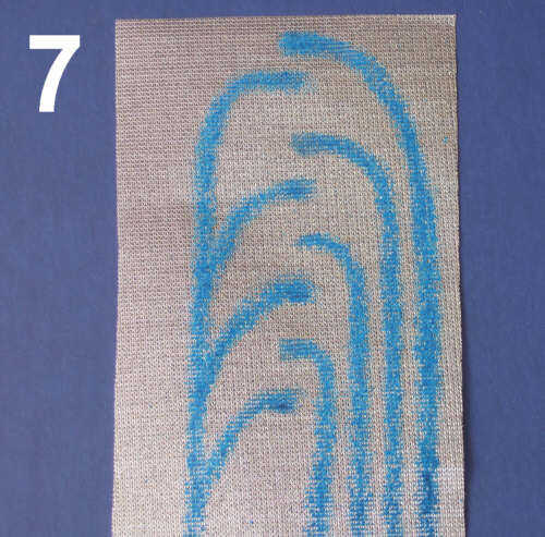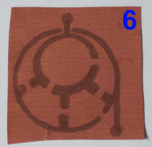 Para colocar resisten la FlecTron (foto 6) o el VeilSheild, he pintado en esmalte de uñas claro. Si lo pones en espesor suficiente, se sature a la tela y resistir el grabador en ambos lados. Para evitar que se peguen, he pintado sobre una superficie plana con papel de cera debajo de la tela. Después de 5 minutos debe estar suficientemente seco para voltear y retocar cualquier manchas secas en la parte posterior.