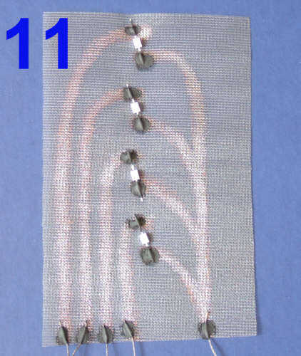 Foto 10 muestra el circuito de resistir crayon con uno conducido encendido. es transparente que los LEDs pueden montarse en la parte posterior y el brillo del LED vendrá a través de la tela de malla de níquel.