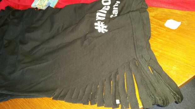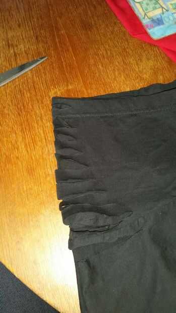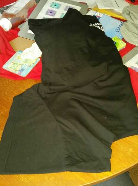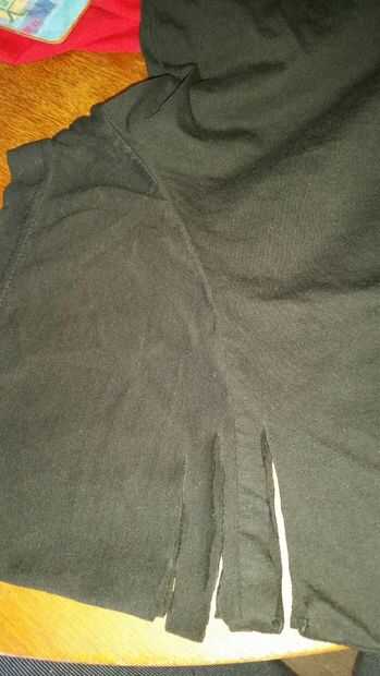Para mi mangas que quise tejerlos, dobla la camiseta y me alinearon las mangas. Globo ocular las medidas para hacer los primeros cortes. (No menos de una pulgada de ancho) Los tejidos de aspecto más bonitos son en diagonal, así que empiece con su ranura más larga y hacia atrás.