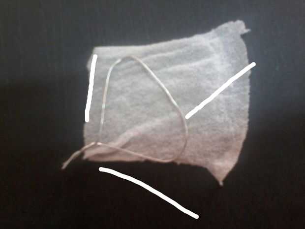 Coloque el tejido en el lugar de trabajo y poner la cuerda sobre él y doblar según las líneas marcadas en el punto rojo