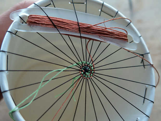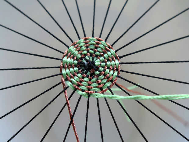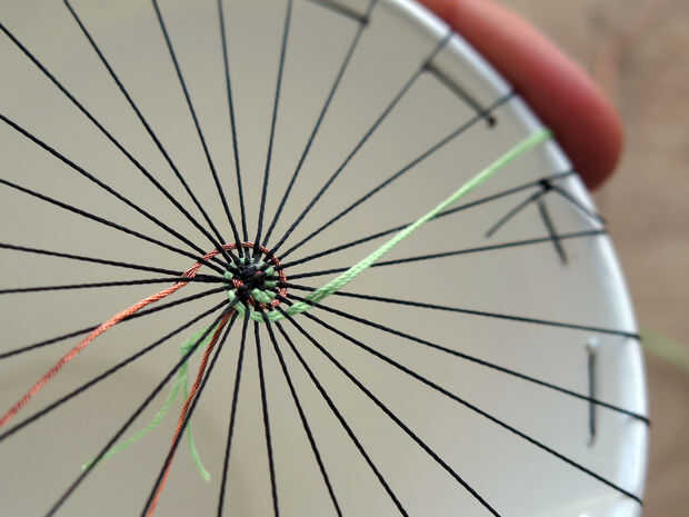 Después de comenzar con uno completo redondo de hilo conductor, cambiar a tejer con un hilo de coser no conductor (también puede usar hilo o cadena). Asegúrese de que su hilo no conductor es espaciado del hilo conductor aparte para que no se toque. Si el hilo conductor está aislado y se toca, electricidad puede fluir de una parte del hilo de rosca a la otra y no se verá obligado a fluir alrededor y alrededor en círculos, que es lo que amplifica el campo electromagnético que provocan las vibraciones más fuertes como el electroimán atrae y rechaza de imán permanente.