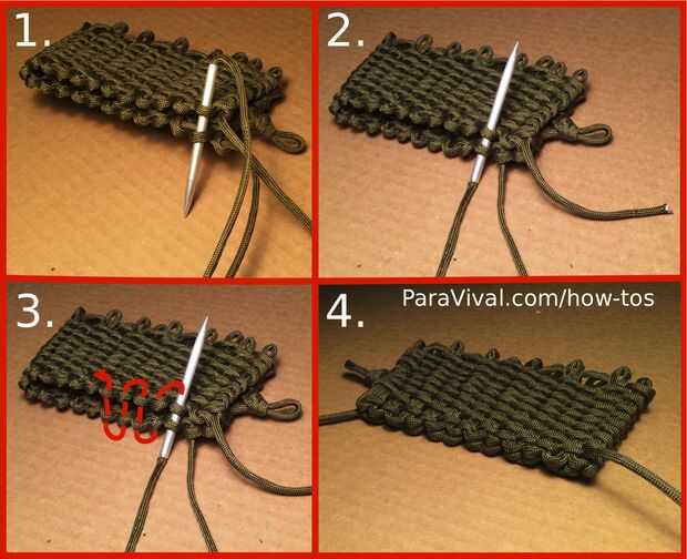 Paso 1: Empezar a hacer el contorno Usted necesita medir el tamaño de paracord. Entonces comienzan a hacer parte. (ver fotos)Paso 2: Envolviéndolo Después de envolver cables alrededor y atarla.Paso 3: Roscado de la parte posterior Ahora necesitas la