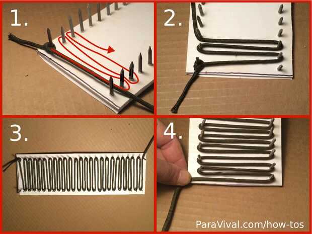 Paso 1: Empezar a hacer el contorno Usted necesita medir el tamaño de paracord. Entonces comienzan a hacer parte. (ver fotos)Paso 2: Envolviéndolo Después de envolver cables alrededor y atarla.Paso 3: Roscado de la parte posterior Ahora necesitas la