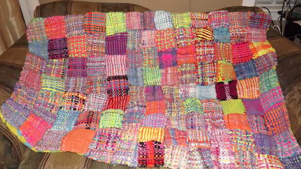 Hablando de nostalgia! Mi marido y yo fuimos a una tienda de artesanía y chico los recuerdos llegó inundando nuevamente! Recuerdo cuando era una niña en la vida de comienzos de los 70 en Bronx, Nueva York y todos los sábados mi madre enviaron a sus cuatro hijas a GFS. (Sociedad de ambiente de la muchacha). Se llama en la sociedad actual Club de chico y de chica. Bien durante la navegación a través de los muchos pasillos de la tienda de artesanía, me encontré con el Kit de lazo tejido para hacer las agarraderas. Mi hermana y yo hace muchos diferentes agarraderas. Mi mamá tenía de tomaollas para días. Hicimos tantos que nos dieron a nuestra tía y vecinos. Fue que vi este juego y bolsa de lazos que decidí hacer una agarradera y cada bolsa hecha agarraderas cerca de 20. ¿Así que lo iba a hacer con todos estos agarradores? Decidí coserlas juntos y hacer una colcha. La colcha ascendía a 100 agarraderas que era aproximadamente 5 bolsas y el resultado final fue un tejido de soporte pot cálido y acogedor agradable y por cierto el tejido es muy pesado. Me tomó cerca de 2 semanas para hacer la colcha y era un montón de diversión!