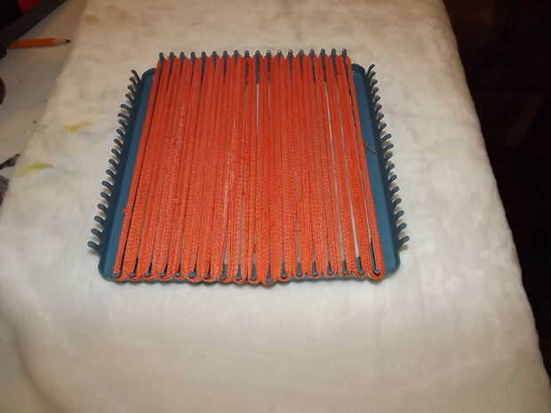 Pones los lazos individualmente en cada borde de la llanta de lazo tejido. Vas hacia abajo en el lazo tejer - un lazo a la vez.