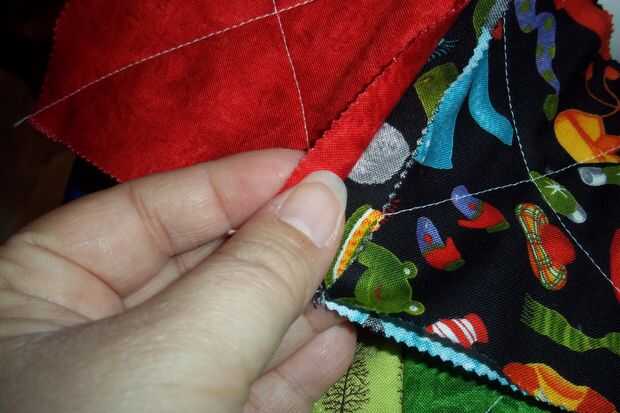 Al prender tus franjas juntas, asegúrese de que para que coincida con sus costuras como mejor puede. Si han mantenido una constante 1/2 pulgada de costura cuando fueron haciéndolos, esto no debería ser un problema. Al principio y al final de cada fila a medida que agrega a su tejido que desea También asegúrese de que tomar varios pespuntes. También, seguro que coser con sus costuras abiertas en vez de girarse de cualquier manera.