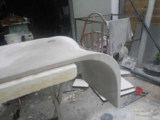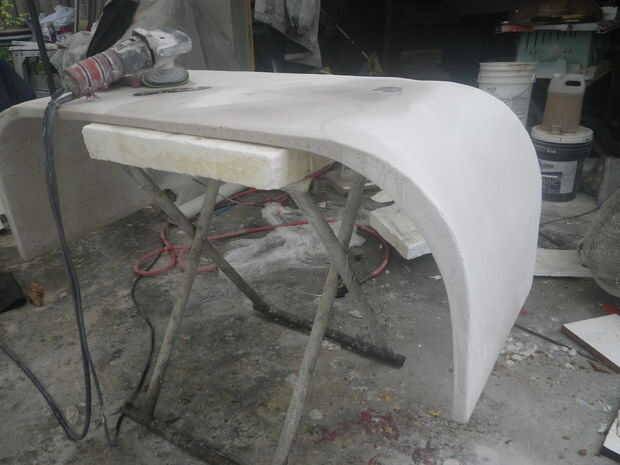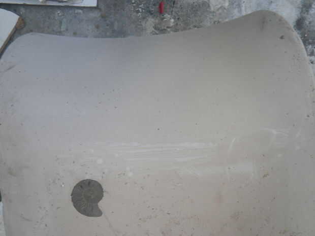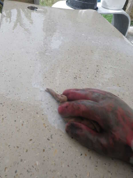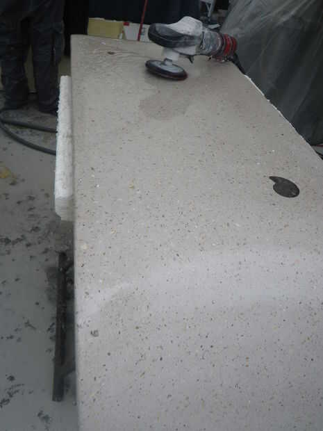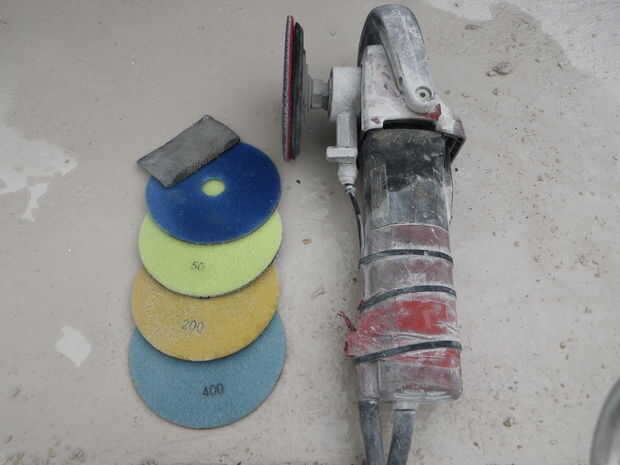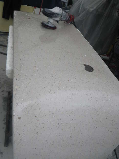 Pulido no es realmente necesario ya que la hoja le da un gran acabado con textura, pero en este caso estamos tratando de exponer el agregado, por lo que hemos elegido para pulir. Esto puede hacerse con mano barata diamante tampones para pulir o si prefieres y tienes un pulidor de agua.