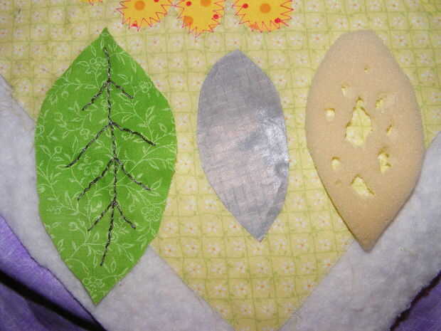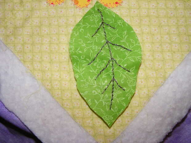 • Con hilo conductor, coser un patrón de venas en la hoja de la tela.