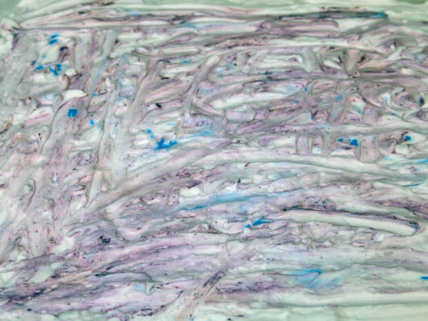 • Tome el palito / diente elegir y ejecutar a través de la espuma que se separa los colores alrededor.  Puede revolver para hacer espirales y líneas con el palo o tomar más aleatoria enfoque - que es una especie de lo que hacía.