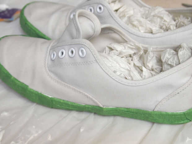 • Moje la lona de los zapatos antes de teñir (según RIT morir instrucciones).