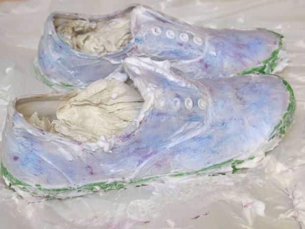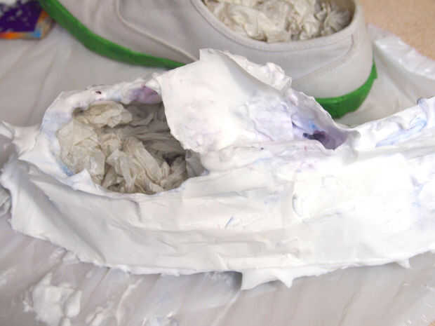 • Una vez que la tela de los zapatos esté bien cubierta, Pele el plástico.