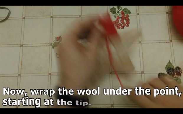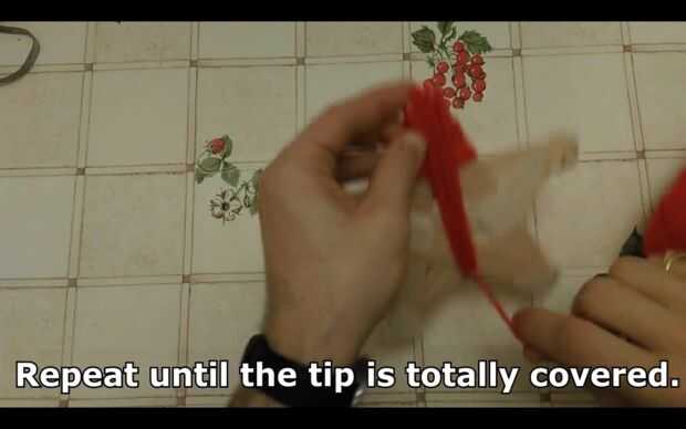 Para cubrir la punta del punto de la estrella, envolver en el lado opuesto de la estrella (ver fotos) y envoltura encima y por debajo hasta que la punta está cubierta.