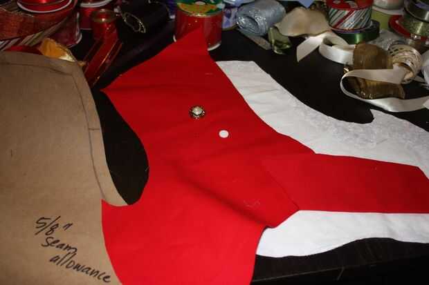 A los efectos de este tutorial, vamos a asumir que su siembra se apuntan a la derecha, como en el ejemplo. Con su patrón de papel, corte 2 guarnición (derecho lados juntos) y una cinta de copia de seguridad. Recortar 1 siembra de su tela decorativa - con el lado derecho de la tela hacia abajo, poner el patrón, hacia la derecha, sobre el revés de la tela. Esto hará que la tela de forro decorativo enfrentan la dirección opuesta – Recuerde, va en la parte posterior. Para el manguito, doblar la tela decorativa y alinear sus marcas pun ¢ o con el doblez, los bordes crudos en la parte superior de la media. Corte 1 brazalete (ver diagrama anterior).